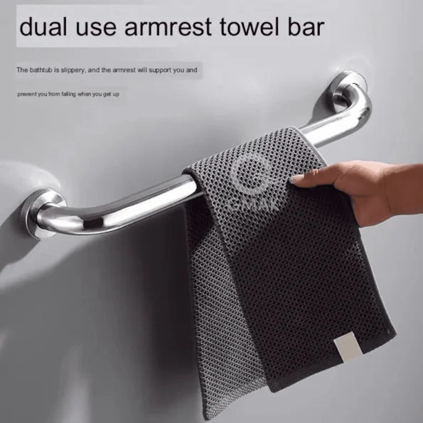 - استخدام مزدوج: ليس مجرد مقبض أمان، بل يمكن استخدامه أيضاً كـ حامل فوط (بشكير) عملي وأنيق في حمامك، مما يضيف وظيفة إضافية وقيمة لمساحتك.