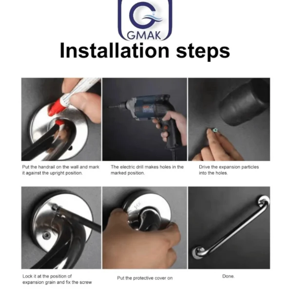 عزز أمان بيتك مع مقبض جيماك المتين والمريح! مثالي للحمام، المداخل، أو أي مكان يحتاج لدعم. يوفر ثباتاً فائقاً لكبار السن والأطفال والجميع. جودة GMAK