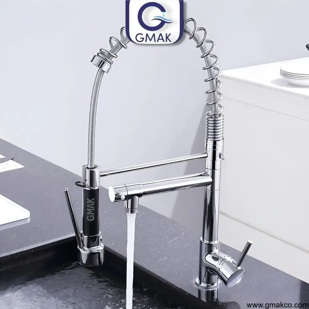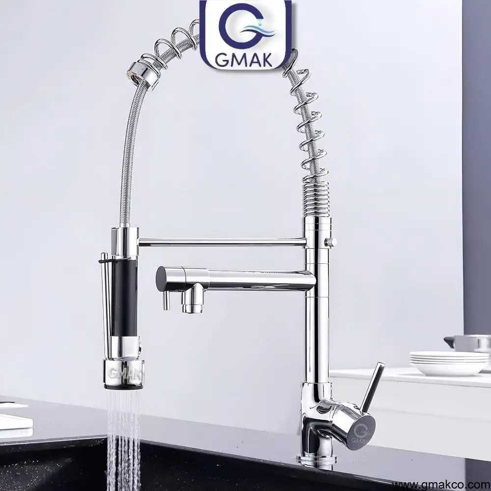 GMAK GMAK 2×1 Zipper Chef Kitchen Mixer in Modern Design pull sprayer. two water outlets. Strong materials and finish with warranty and availability of spare parts.