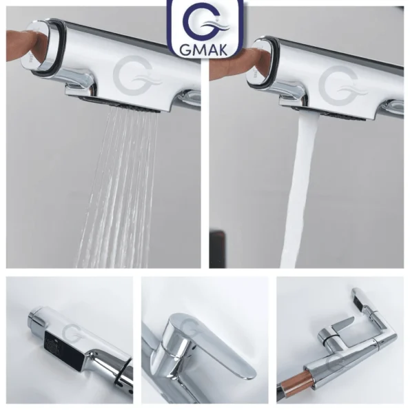 kitchen faucet, sink faucet, smart faucet, GMAK faucet, modern kitchen faucet, stainless steel kitchen faucet, Egypt kitchen faucet, kitchen faucet prices, best kitchen faucet, water saving kitchen faucet.