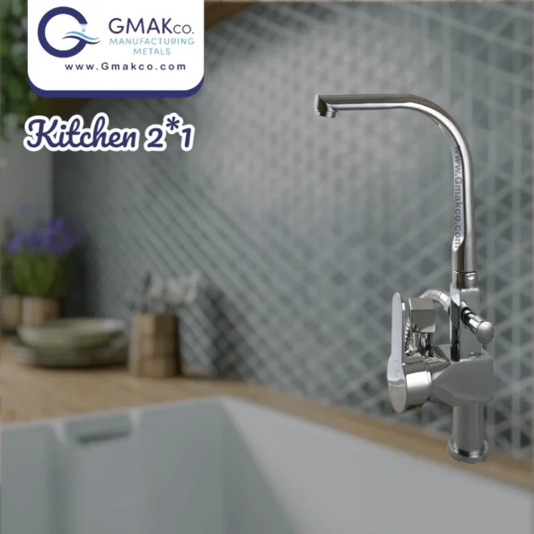 - مصنوع من النحاس، خلاط حائطي بريميوم جيماك 2×1 مصمم ليدوم طويلاً. التصميم الأنيق والعصري يكمل أي ديكور مطبخ.
